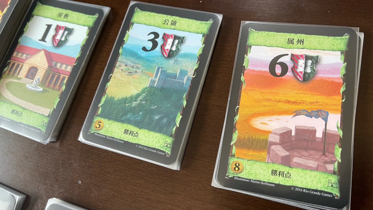 ゲーム終了の条件は「属州カードのサプライが0枚になる」または「各サプライの山札が3種類空になる」のいずれか。ゲーム終了時点で「勝利点」が最も高いプレイヤーが勝ちとなるという、思ったよりシンプルルール。
