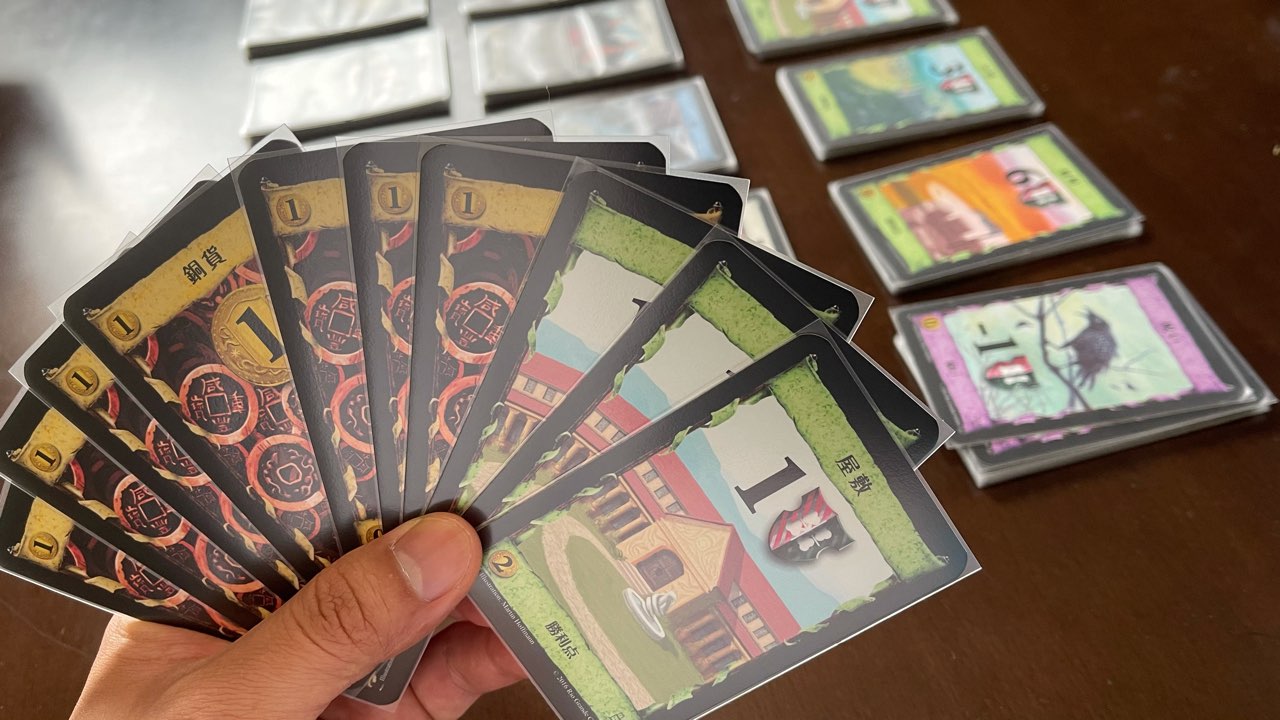 ようやくスリーブを入れる作業が完了すると、ようやくゲームプレイに向けてプレイエリアにカードを並べていきます。