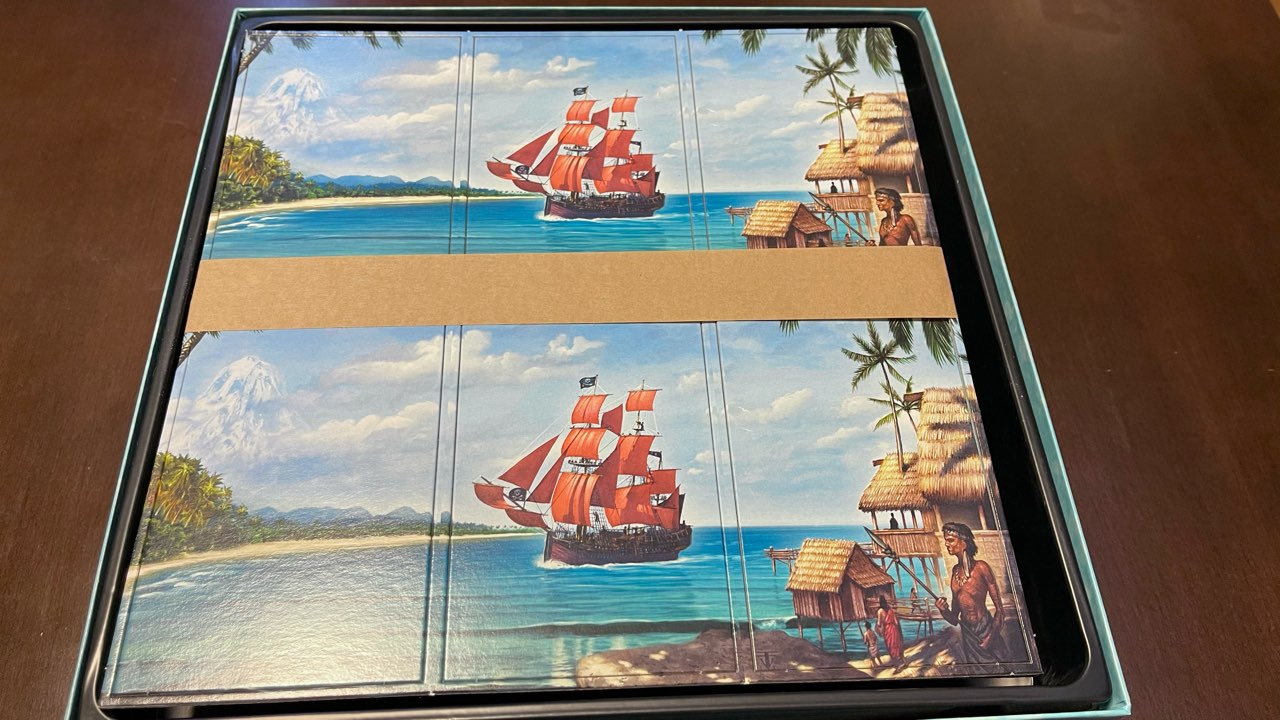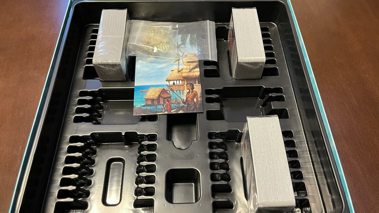 パッケージを開けた段階では、説明書が全面に出てきます。今回は(アクションー持続)の効果や、各種マット(島・海賊船・原住民の村)の獲得タイミングなどを確認したかったのでスリーブ入れ作業前に軽く目を通していました。
