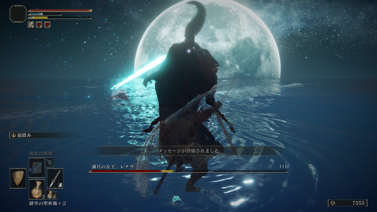 今回はしっかりと探索を繰り返して強化した状態で、「接ぎ木のゴドリック」「満月の女王レナラ」を倒しました。