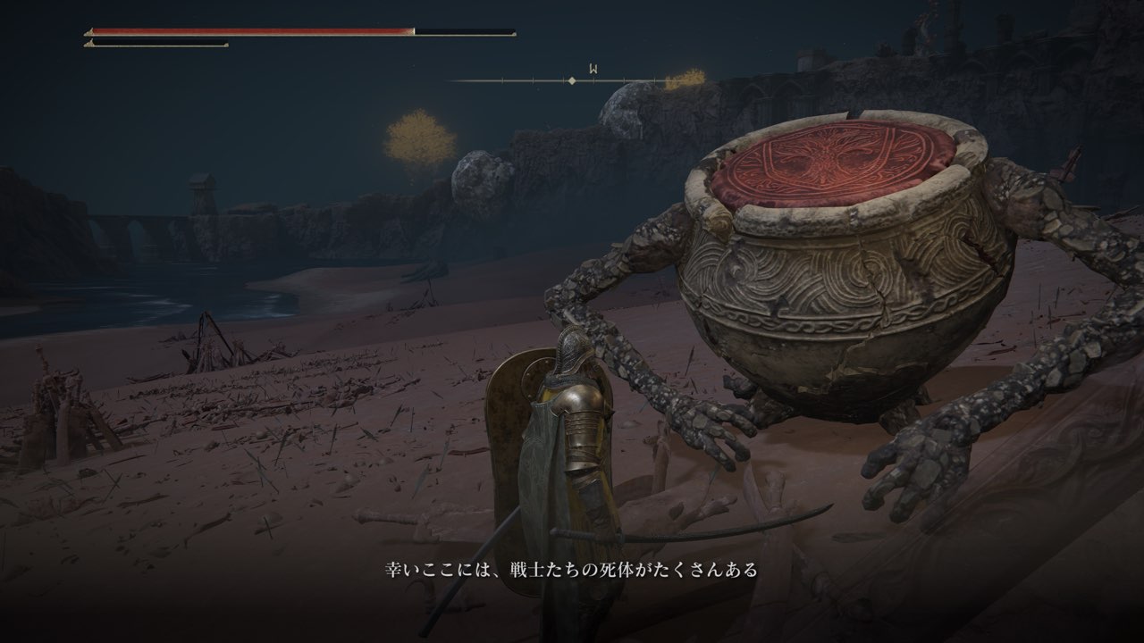 巨人たちの山嶺では、巨大な骸骨や聳え立つ絶壁が褪せ人を温かく出迎えてくれていました。