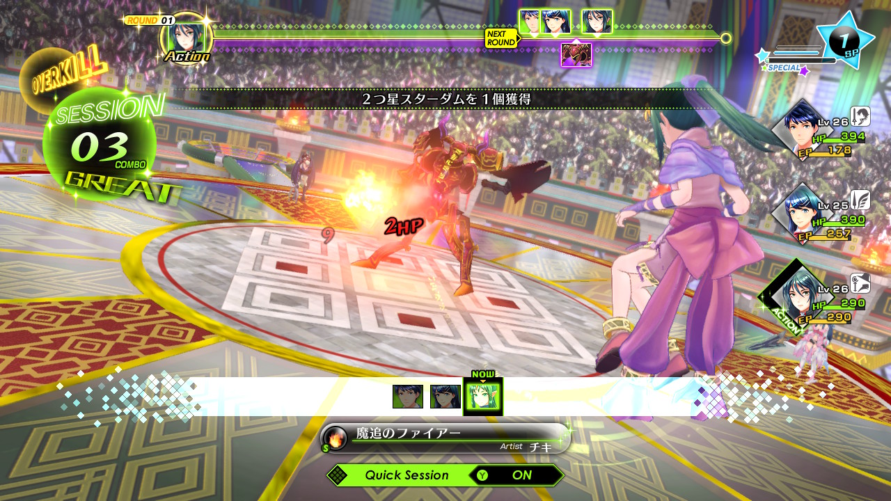 敵の弱点を突いて、仲間によるテンポの良いセッションによる追加攻撃。
