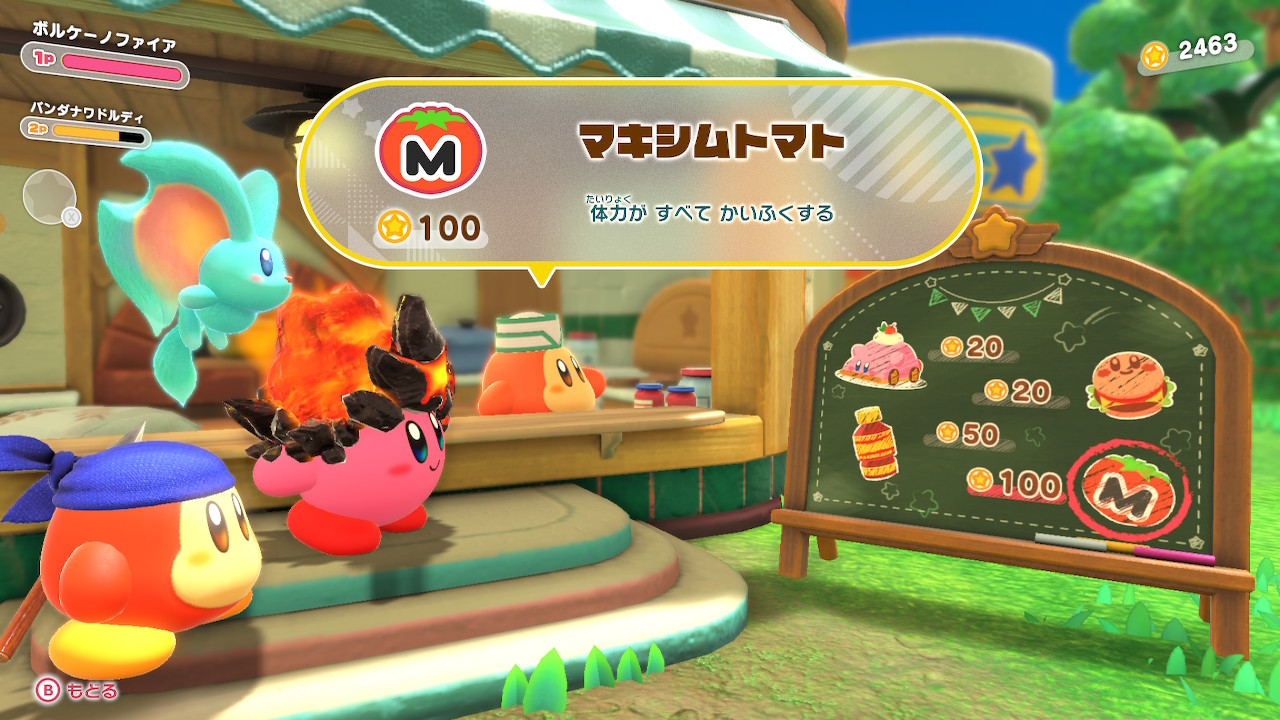 現時点で少し残念な点としては、2Pプレイヤーが操作できるキャラクターが「バンダナワドルディ」固定であることでしょうか。