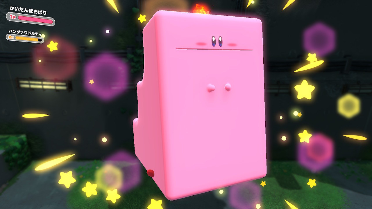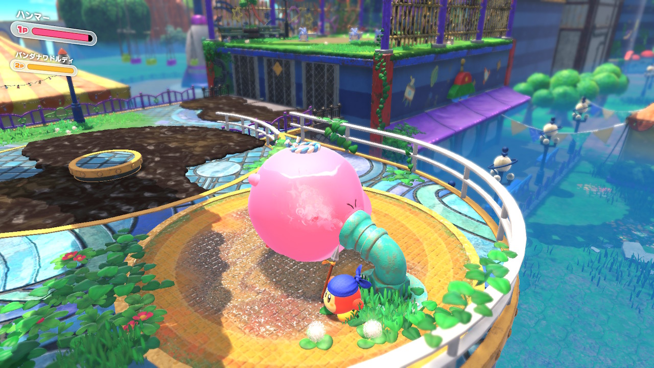 カービィを操作する1Pプレイヤーは、能力コピーやほおばりヘンケイ等で、ステージごとに様々な変化を楽しむことができますが、2Pプレイヤーはそれを眺めていることしかできないのが少し寂しいと感じるかもしれません。