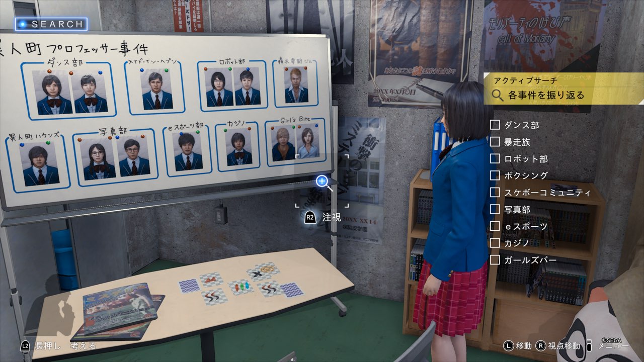 終盤に至るまでは、ミステリー研究会自体の活躍はほぼ無しで、全ユースドラマをクリアし終えたところでプロフェッサーの正体特定に向けて動き出します。