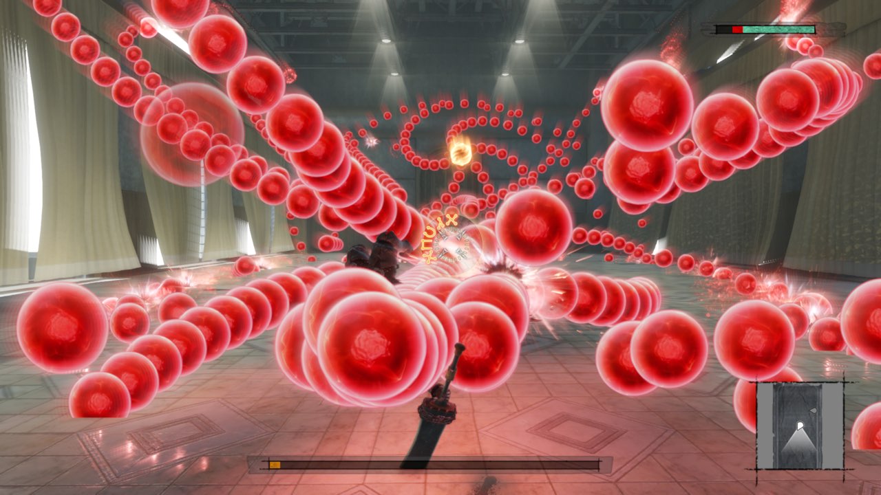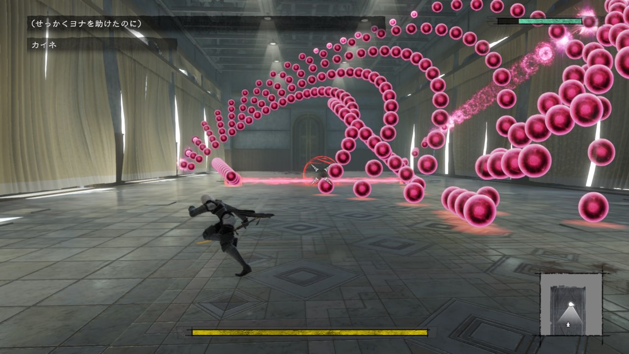 マモノ化したカイネの激しい弾幕を避けていくニーア。
