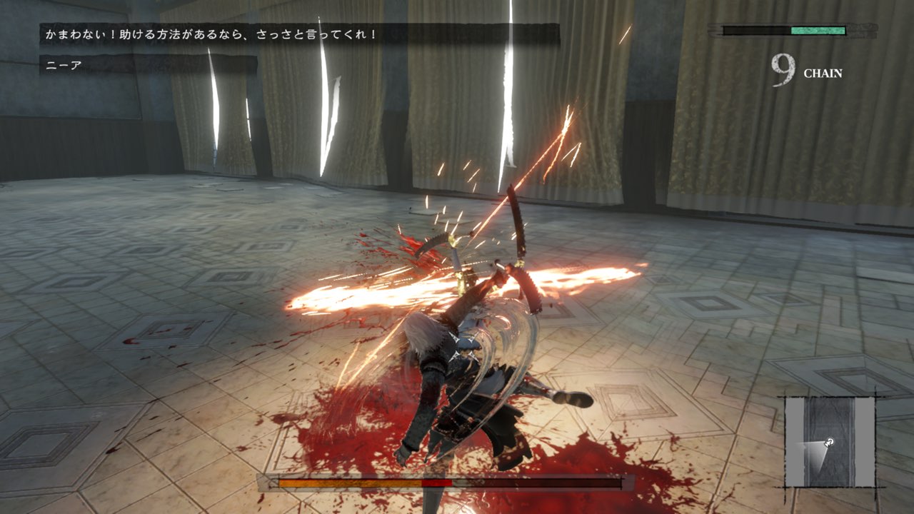 デボル・ポポルを倒した後、ヨナにようやく会うことができましたが、目の前にはオープニング(白塩が舞い散る新宿)で黒の書に適合したオリジナルゲシュタルト化した魔王ニーアが立ち塞がります。