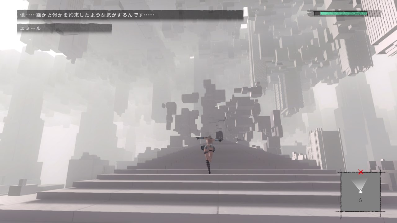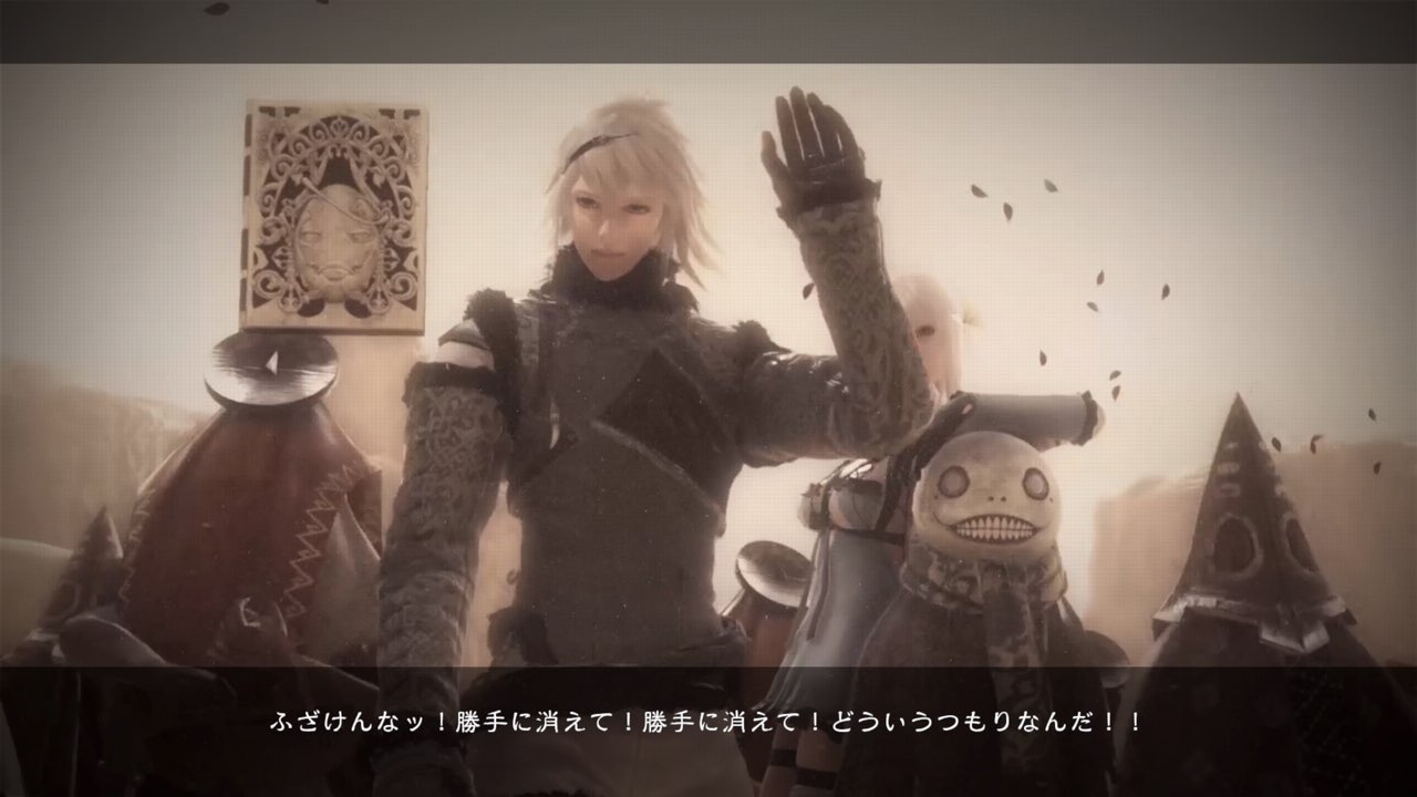 存在が消えたはずのニーアは、以前と変わらず少年期を過ごしている、、、はずだった。崖の村で再びカイネと出会い、おばあちゃんの仇である巨大なマモノと対峙し終えたところでカイネは突如目を覚ます。