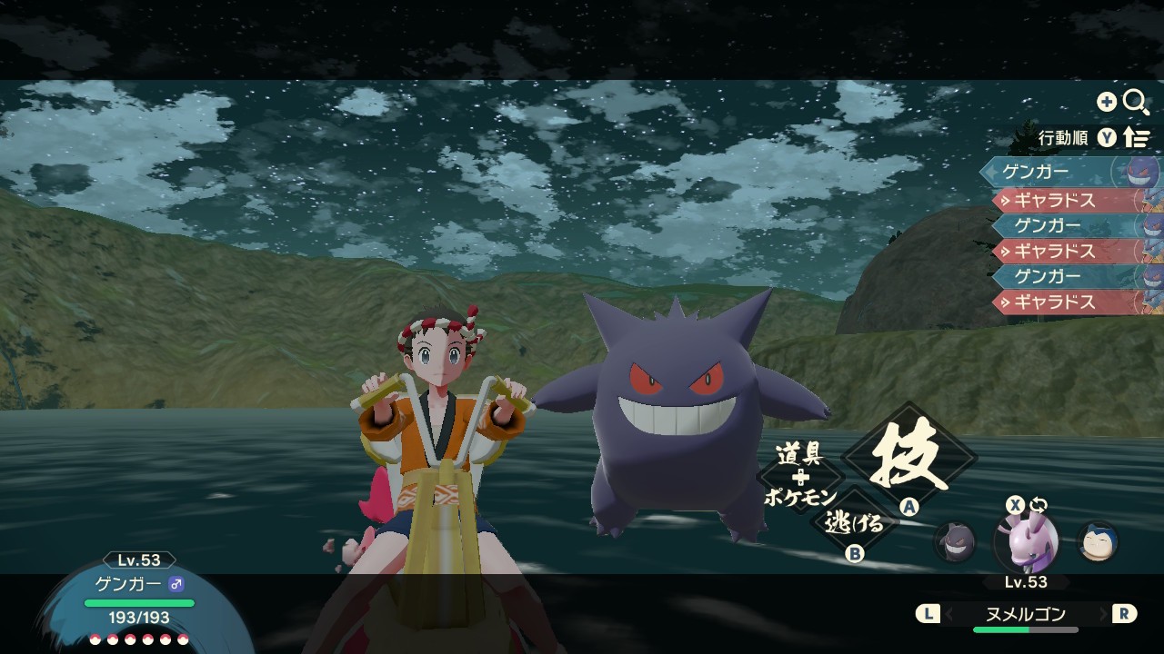 個人的にゲンガー が好き過ぎて、全クリアまでメインメンバーとして活躍してもらおうとしていたのですが、弱点となる相性の技を受けて1撃で沈むことがほとんどでした。