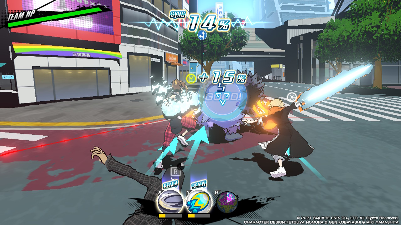 音楽に合わせて、Bボタンを押していくとリズミカルにリンドウが渋谷の街を駆け回ります。