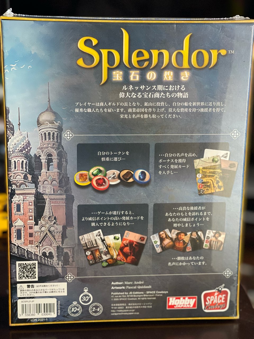 ちなみに、開封時のルールブック下の方に記載されている「宝石の煌き/Splendor」の公式デジタル版(iOS)は現在公開終了となっていて、実際には購入できませんでした。