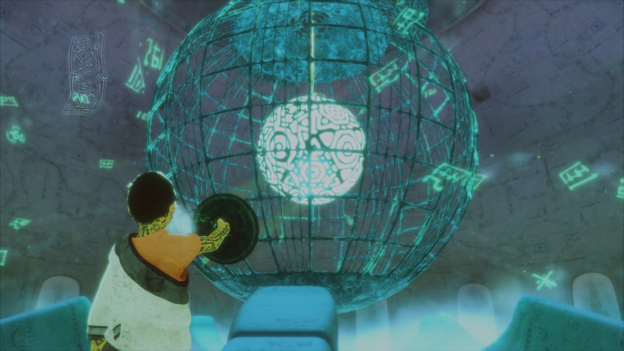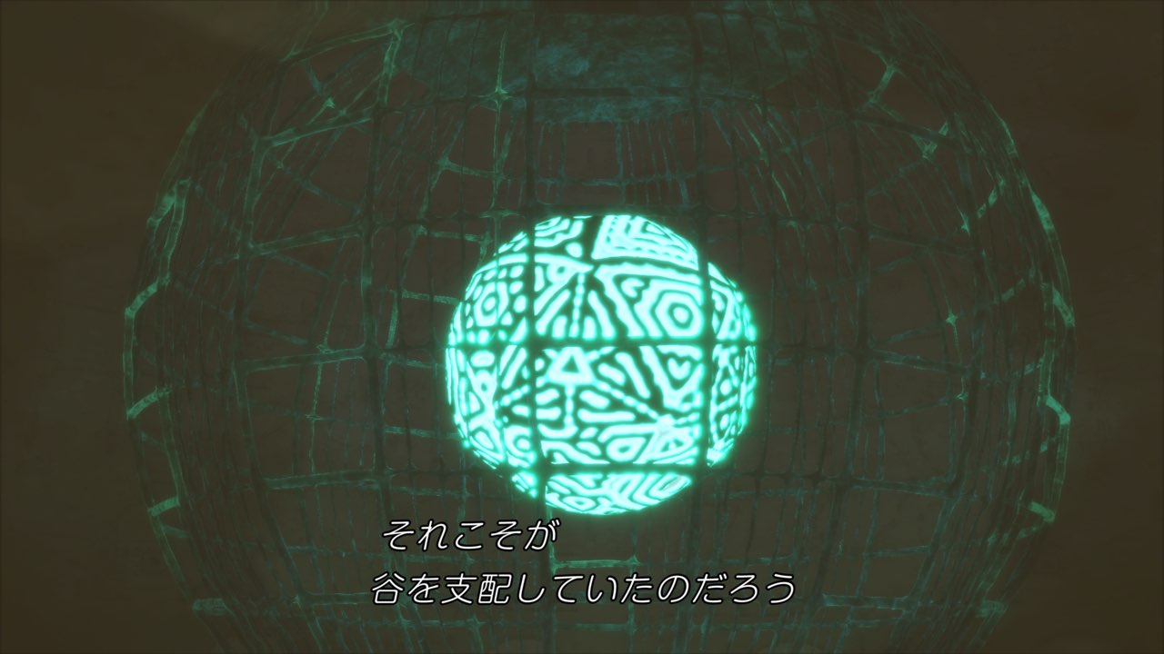 遺跡の中で最も大きな白い塔の上に、謎の核(遺跡のコア)がありました。少年の回想でも語られるように、これこそが「谷を支配していたナニカ」なのでしょう。