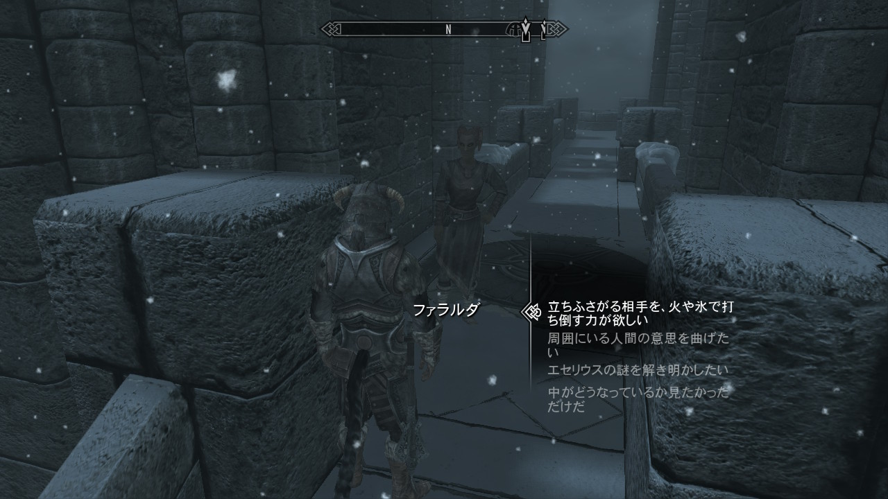 ウィンターホールド大学の入り口にいたファラルダに「志望動機は?」と聞かれたので、「立ちふさがる相手を、火や氷で打ち倒す力が欲しい」と即答する僕。