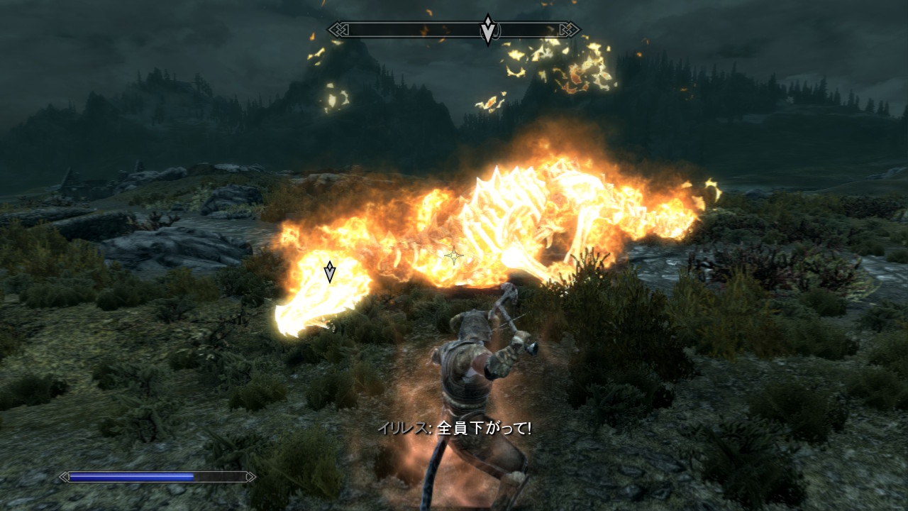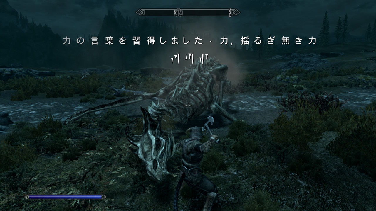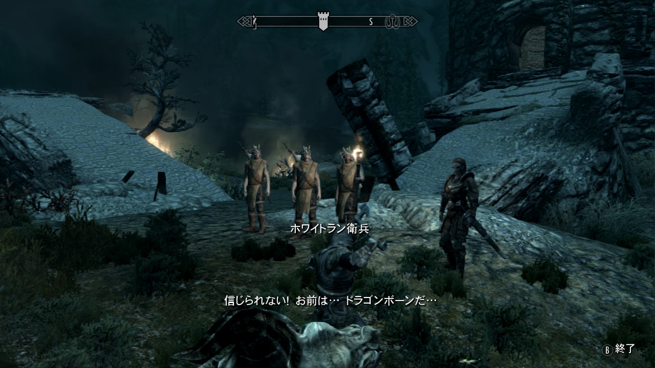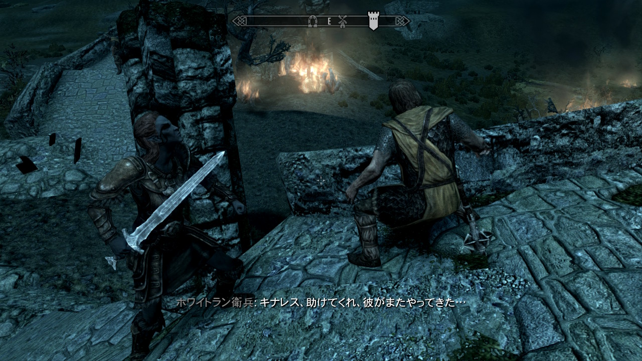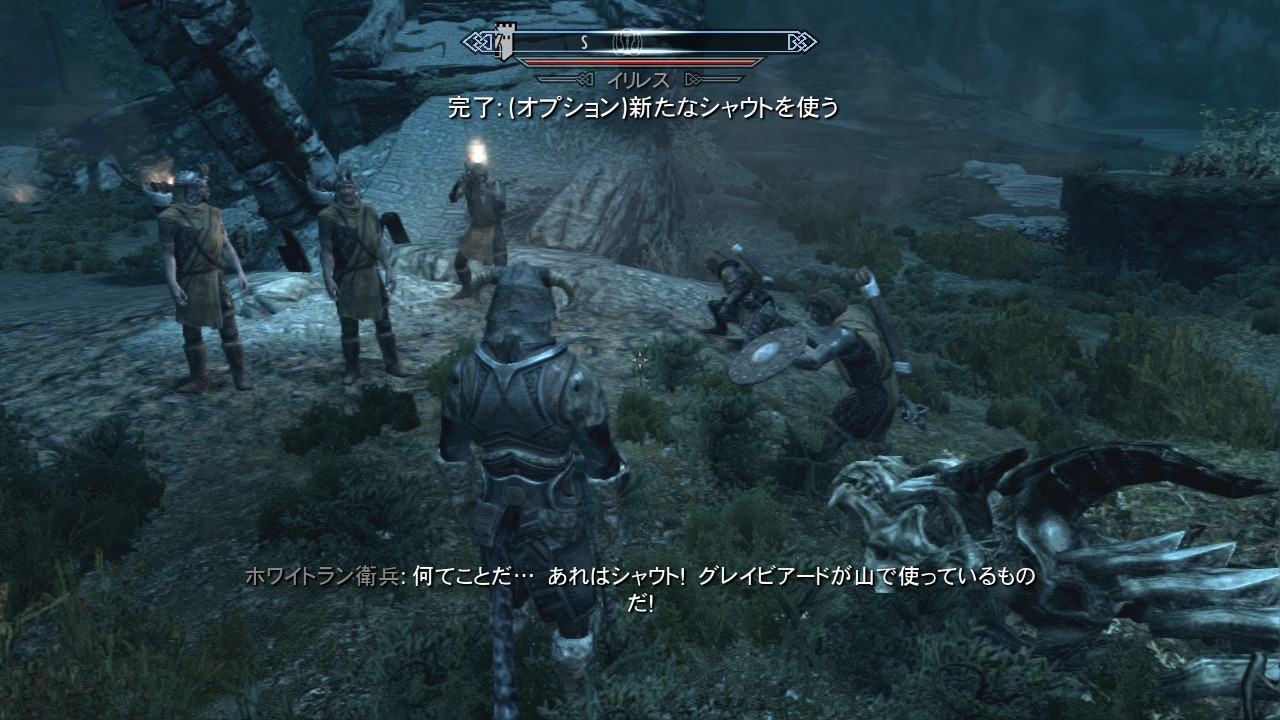 ドラゴンの力を吸収する姿を見た衛兵から、「お前は、、、ドラゴンボーンだ!」と言われ、有頂天になった僕はさっき覚えたシャウト「揺るぎ無き力」を使用。