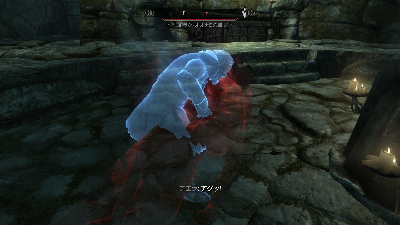 ダンジョン最奥にはコドラクの亡霊が焚き火にあたっているかのように悠長なポーズでお出迎え。