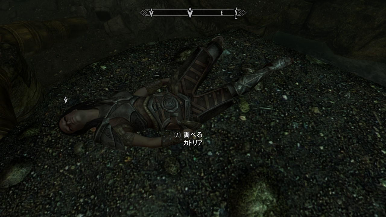 でかい柱近くに倒れこんでる上裸の冒険者の荷物漁り。