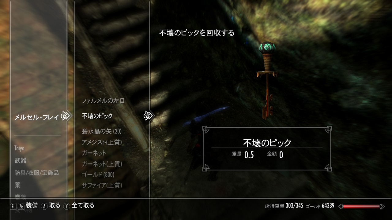 無事に倒したメルセル・フレイの所持品を漁ると「不壊のピック」があったのでしっかりとゲット!