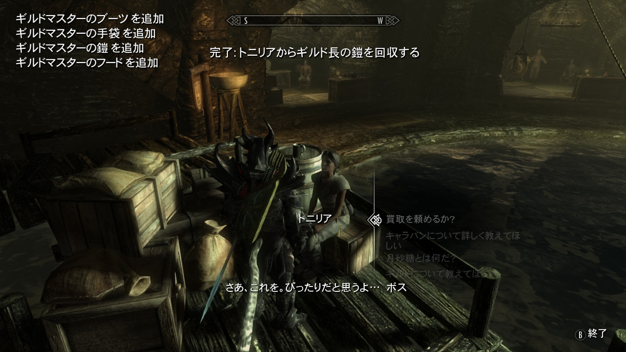 次に、仕立て屋のトリニアからギルド長の鎧を回収することに。