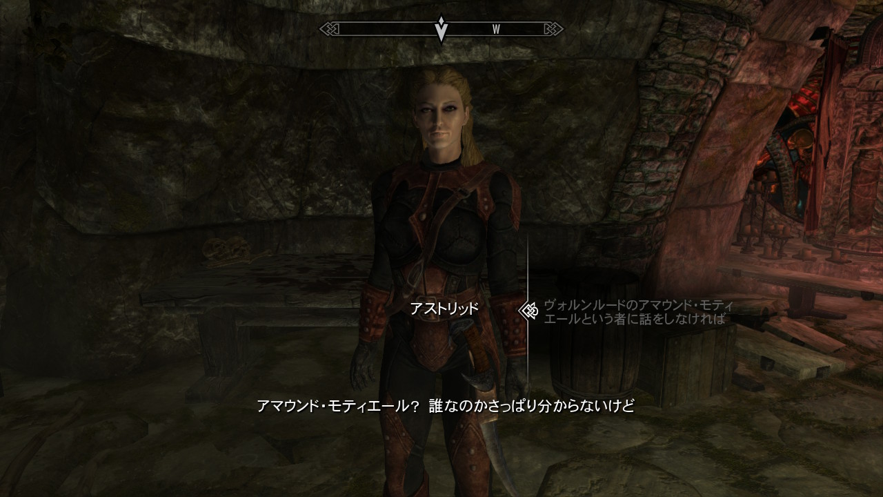 アストリッドに夜母から指令を受けた内容「ヴォルンルードのアマウント・モティエールと話せ」について説明する。
