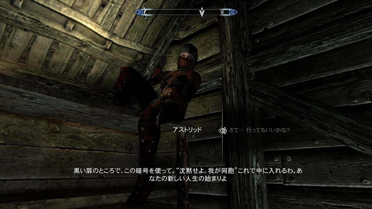 アストリッド「闇の一党に迎え入れたいわ。黒い扉のところで“沈黙せよ、我が同胞”と言いなさい」