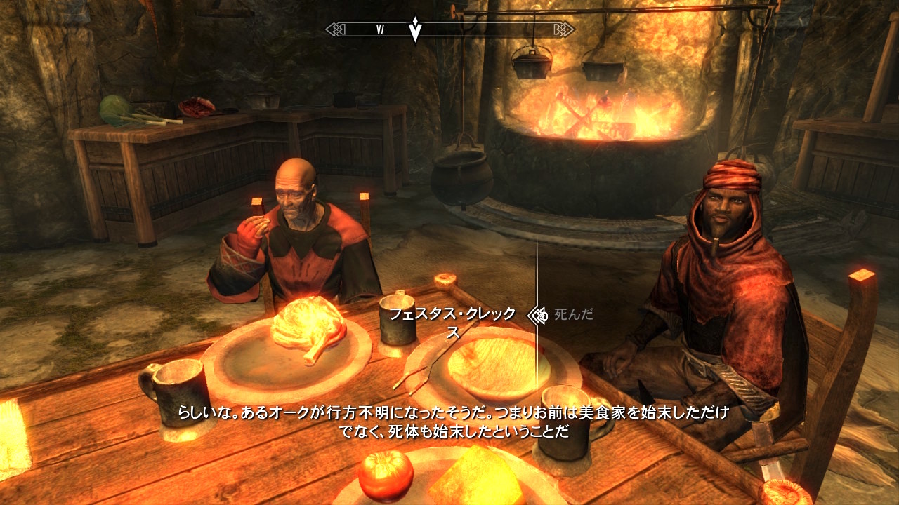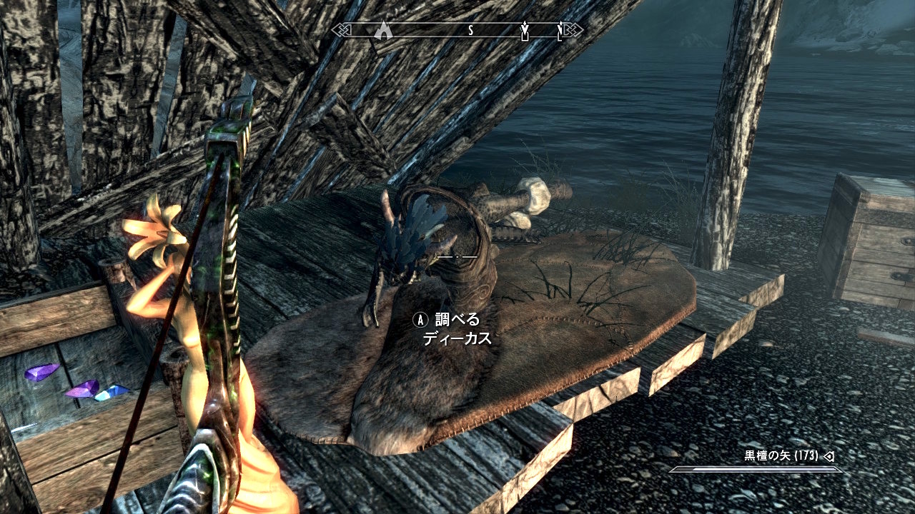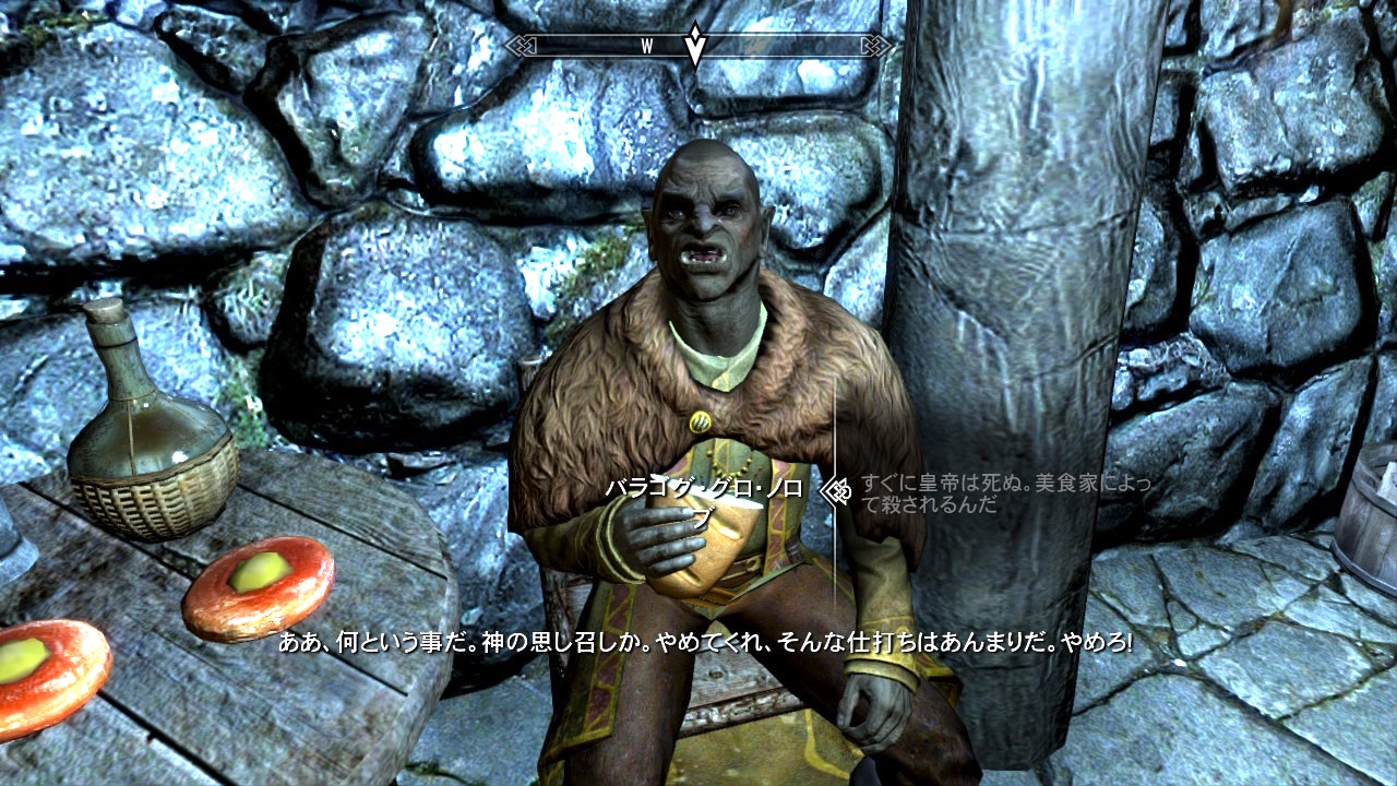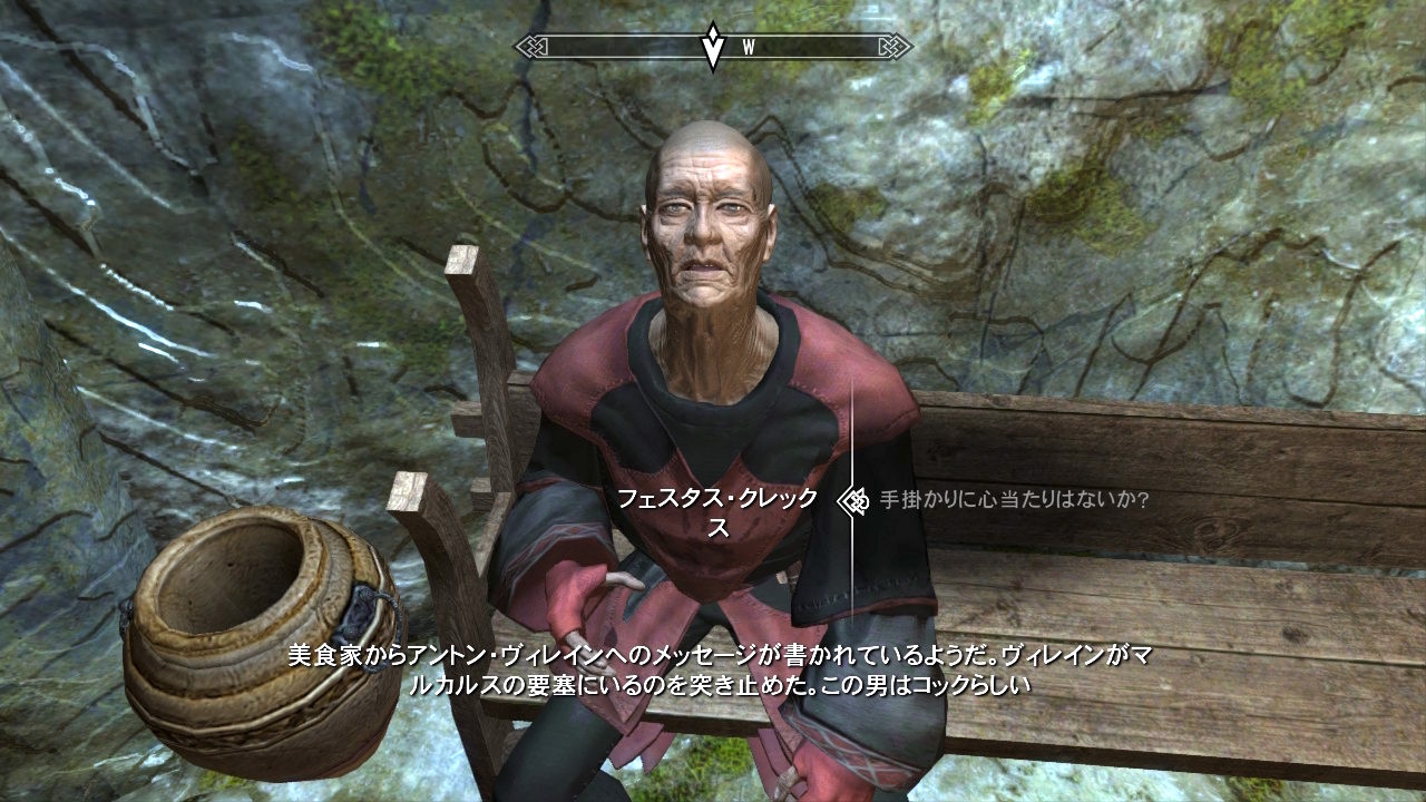 前回シセロをボコボコにして見逃すことに決めたドヴァキンですが、せっかくなのでやつの持ち物をスってやろうとポケットをガサゴソ漁ると、、、