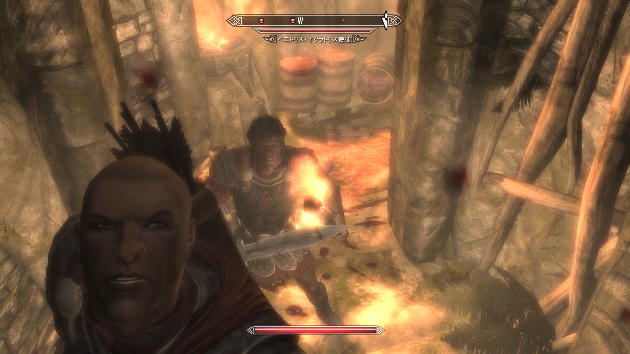 マロ指揮官たちをバッタバッタとなぎ倒し、足早に闇の一党アジトへと戻るドヴァキン。