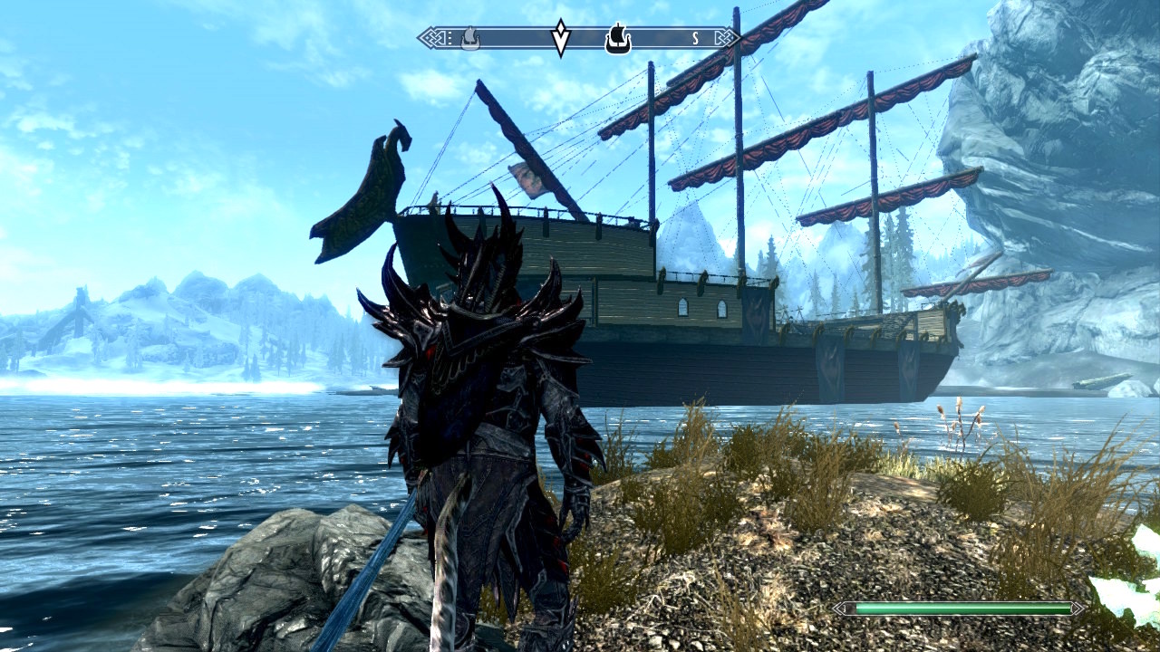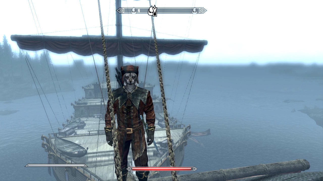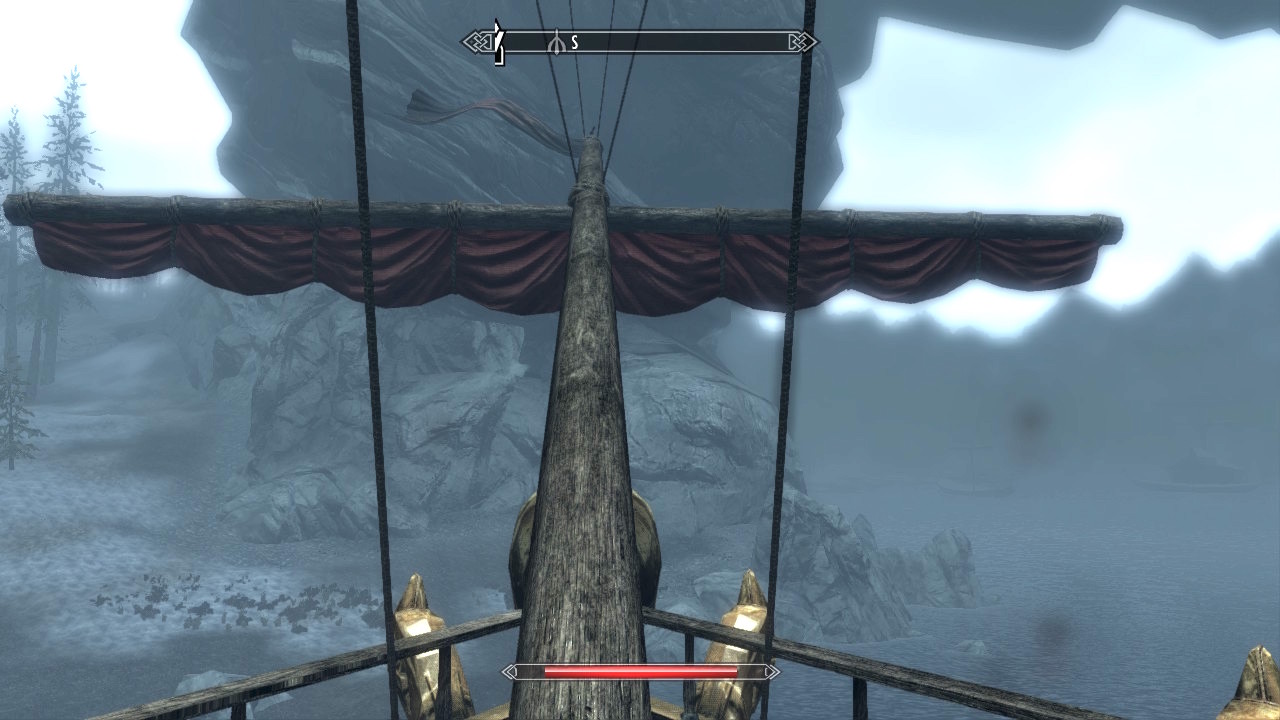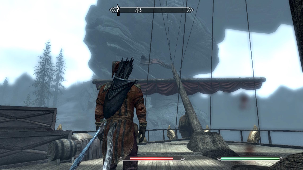 船のデッキに出てきた結果、船の先端まで登ってみたくなるドヴァキン。