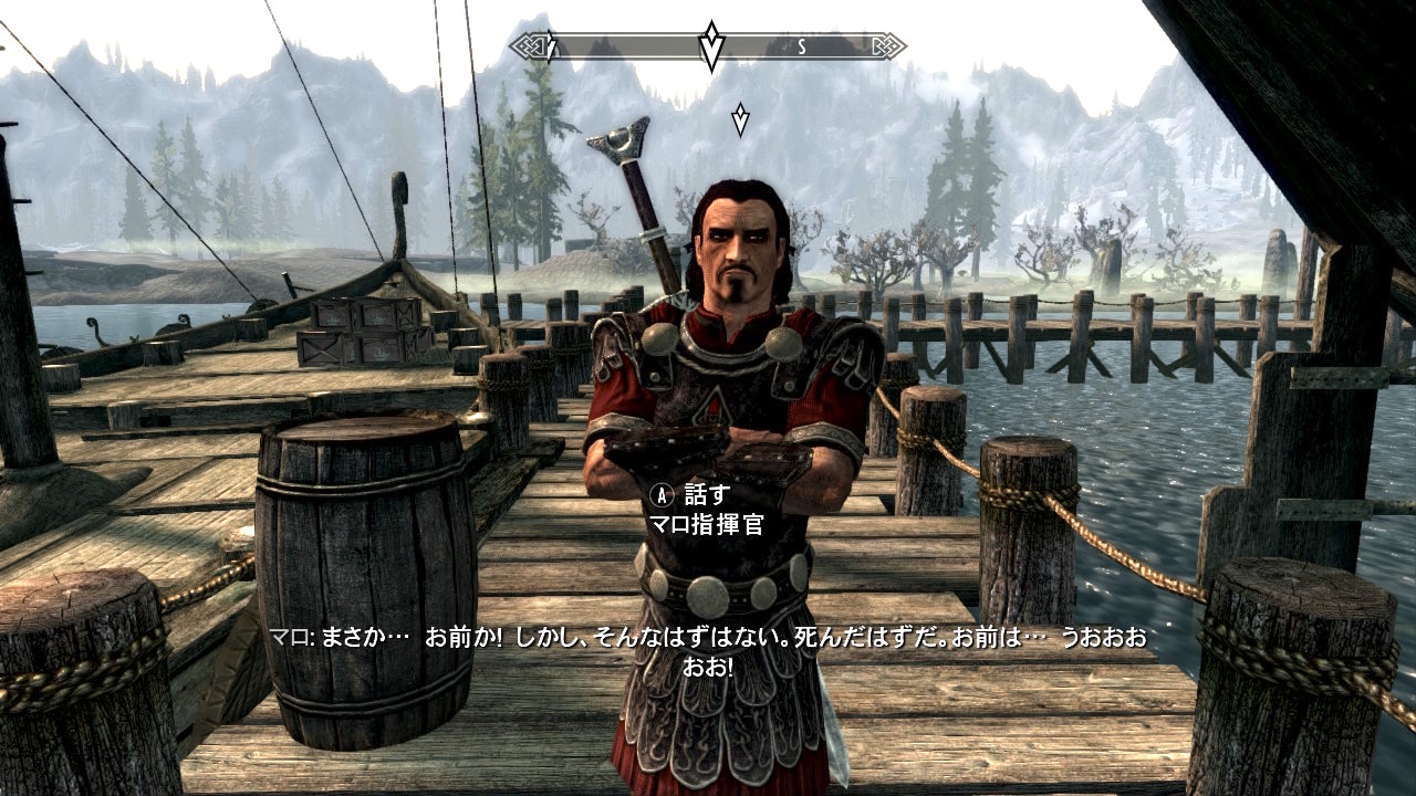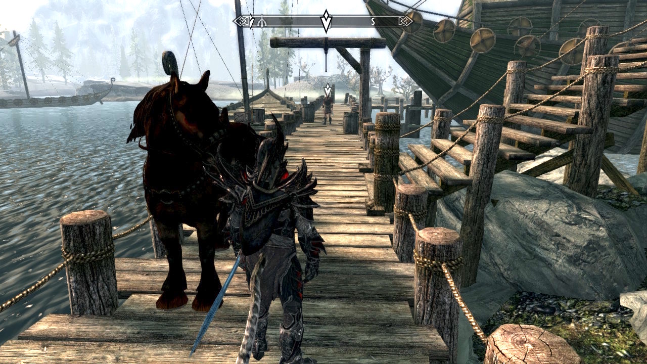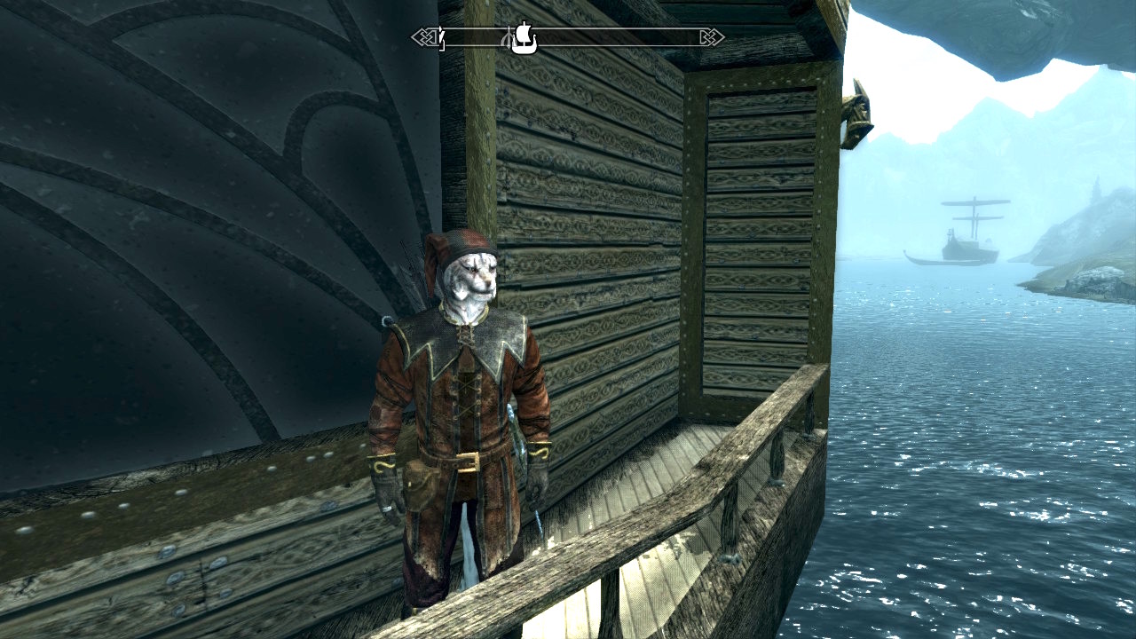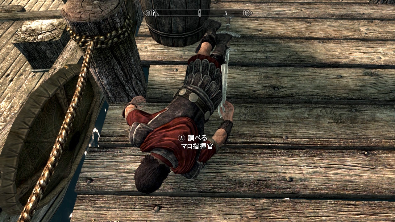 船のデッキに出てきた結果、船の先端まで登ってみたくなるドヴァキン。