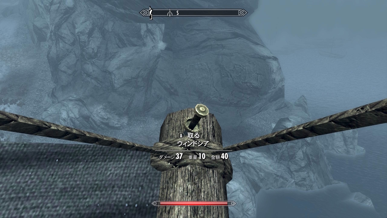 こうして思わぬところで最強の武器(片手剣)を入手した僕は船の先端でニンマリ記念撮影。