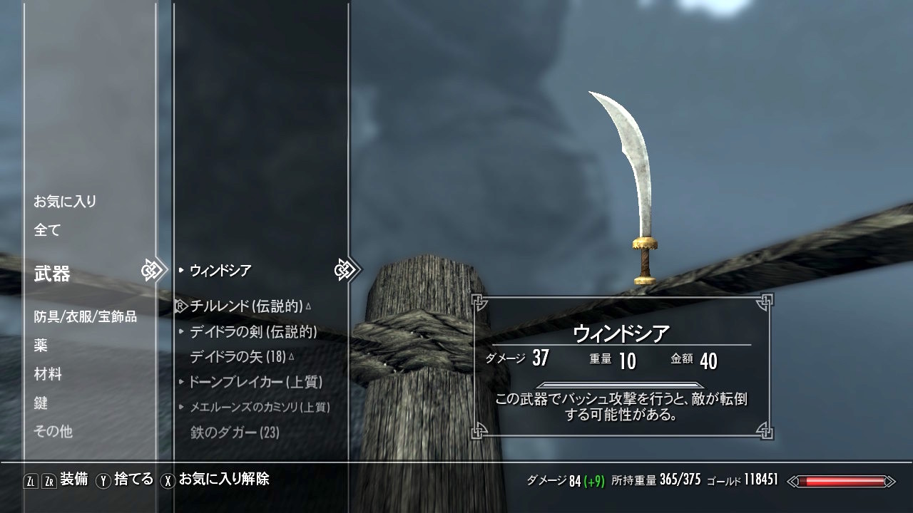 【ウィンドシア】この武器でバッシュ攻撃を行うと、敵が転倒する可能性がある。