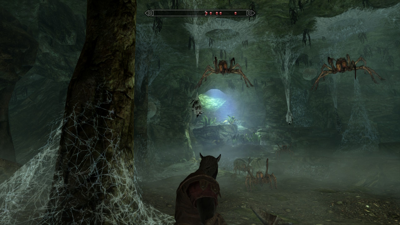 【上画像】ドラゴンから逃げた先の洞窟でクモの群れに襲われたところ