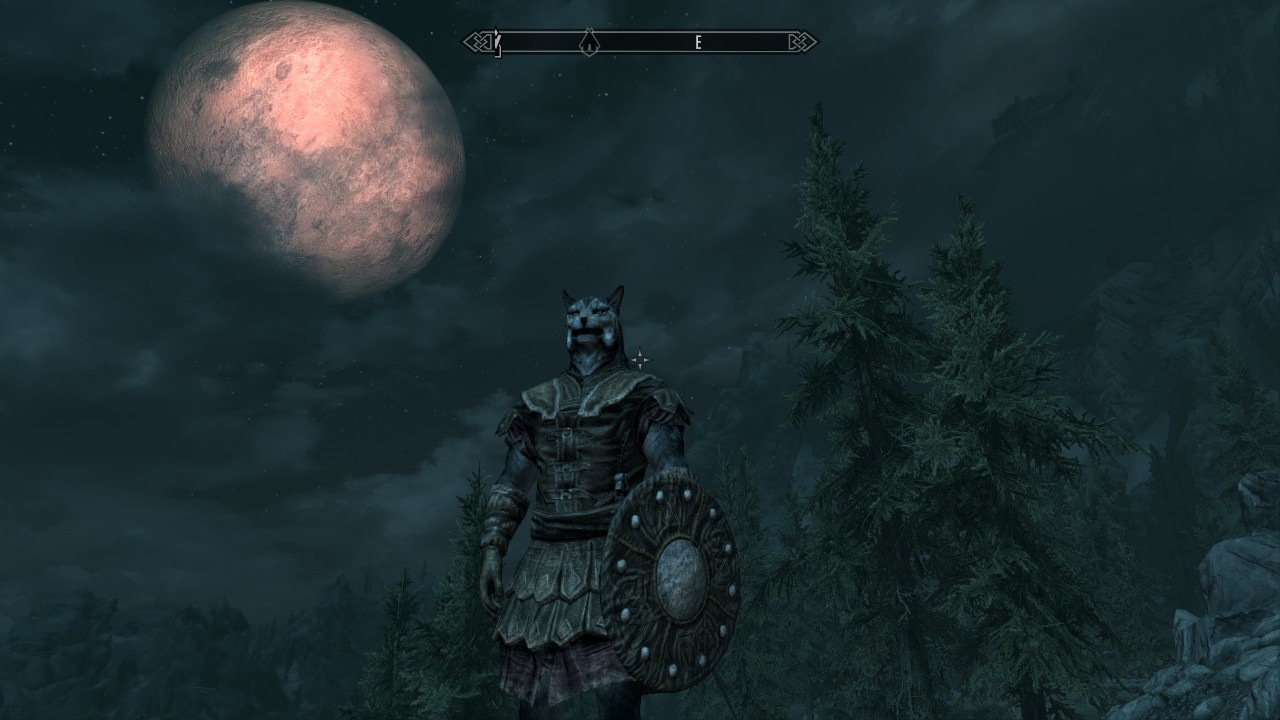 【上画像】ホワイトランという街に向かうも、敵の襲撃により路頭に迷う中、綺麗な月を見つけて記念撮影