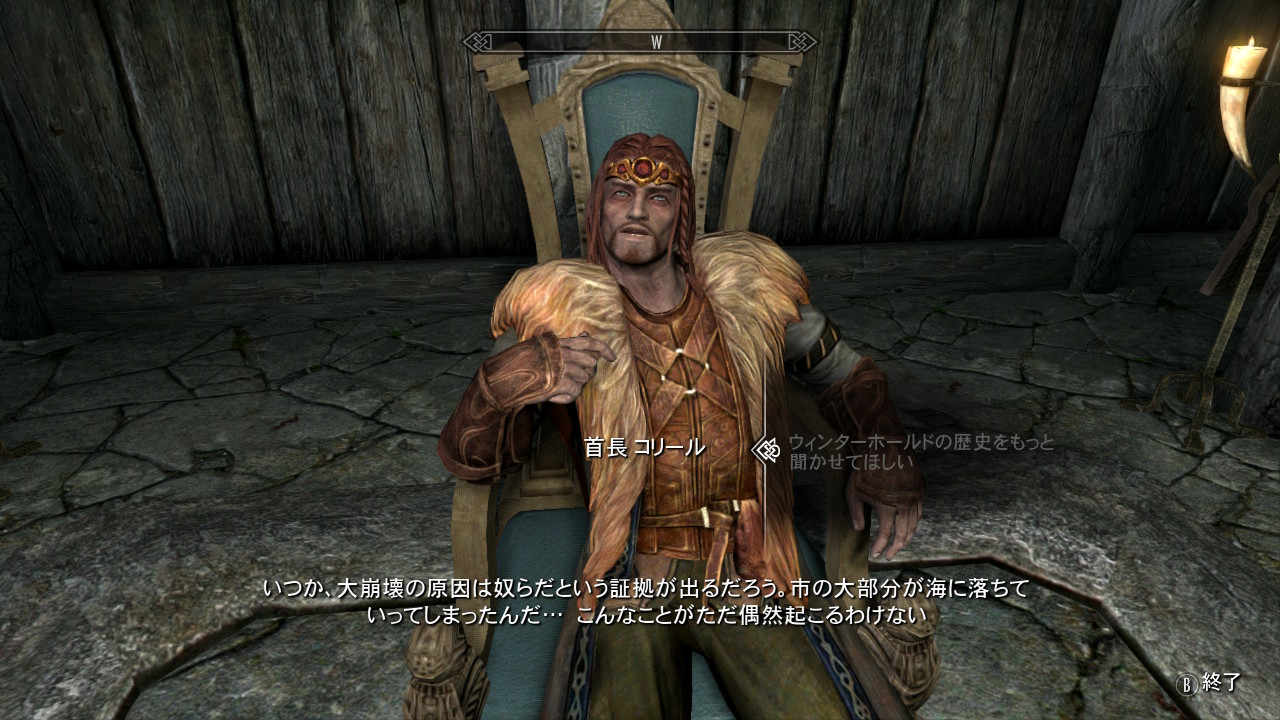 【上画像】一人称視点でプチムービーを演出するも、ウィンターホールドの歴史よりも首長コリールの顔しか印象に残らない結果に