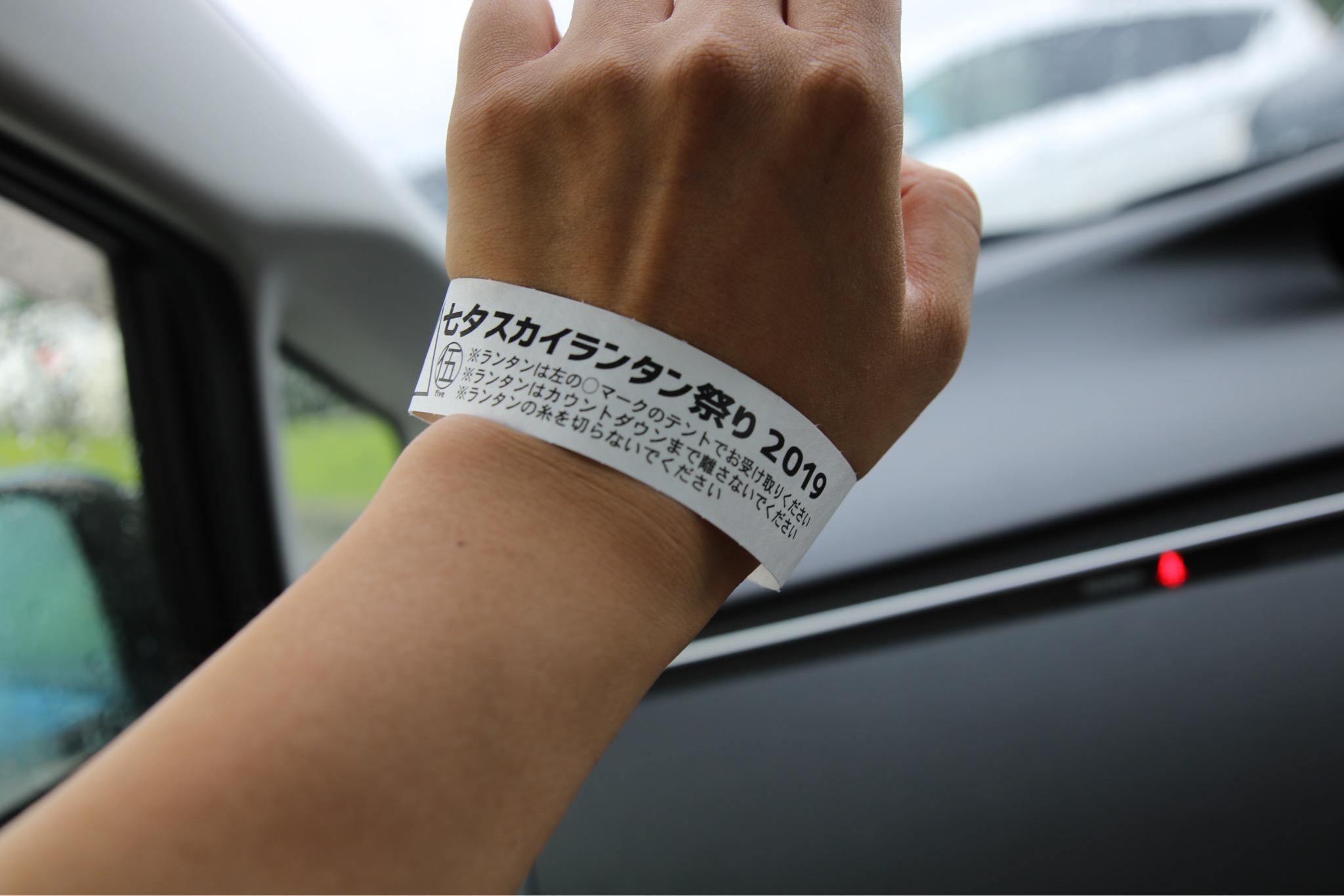 受付後はリストバンドを付けてもらい、スカイランタン受け渡しまで車で待つことに。
