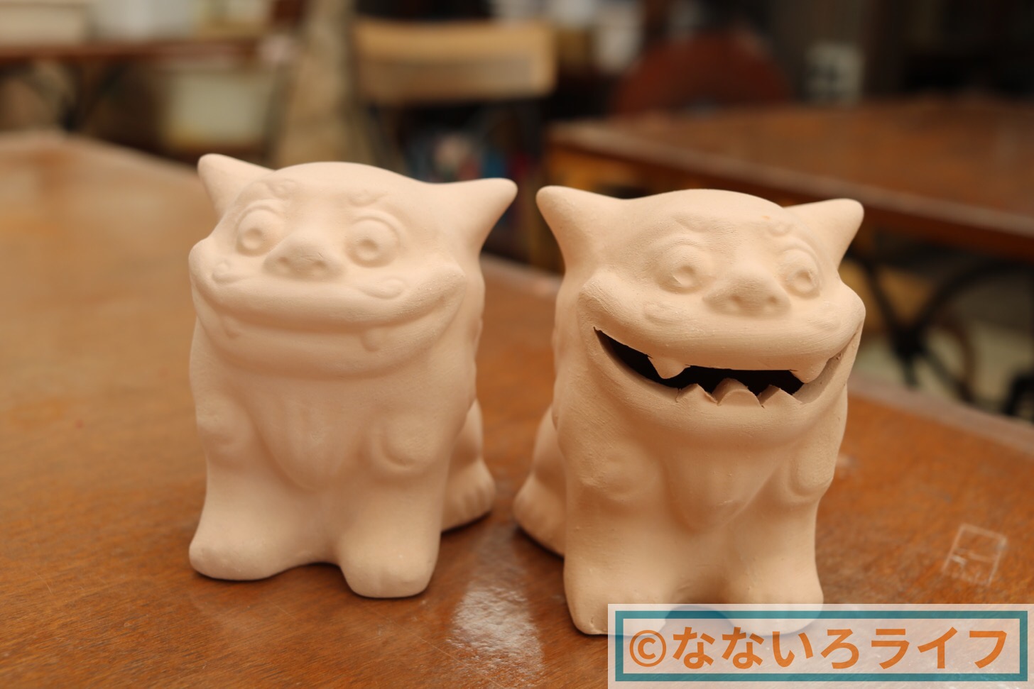 絵付け前の雄雌シーサーがこちら。