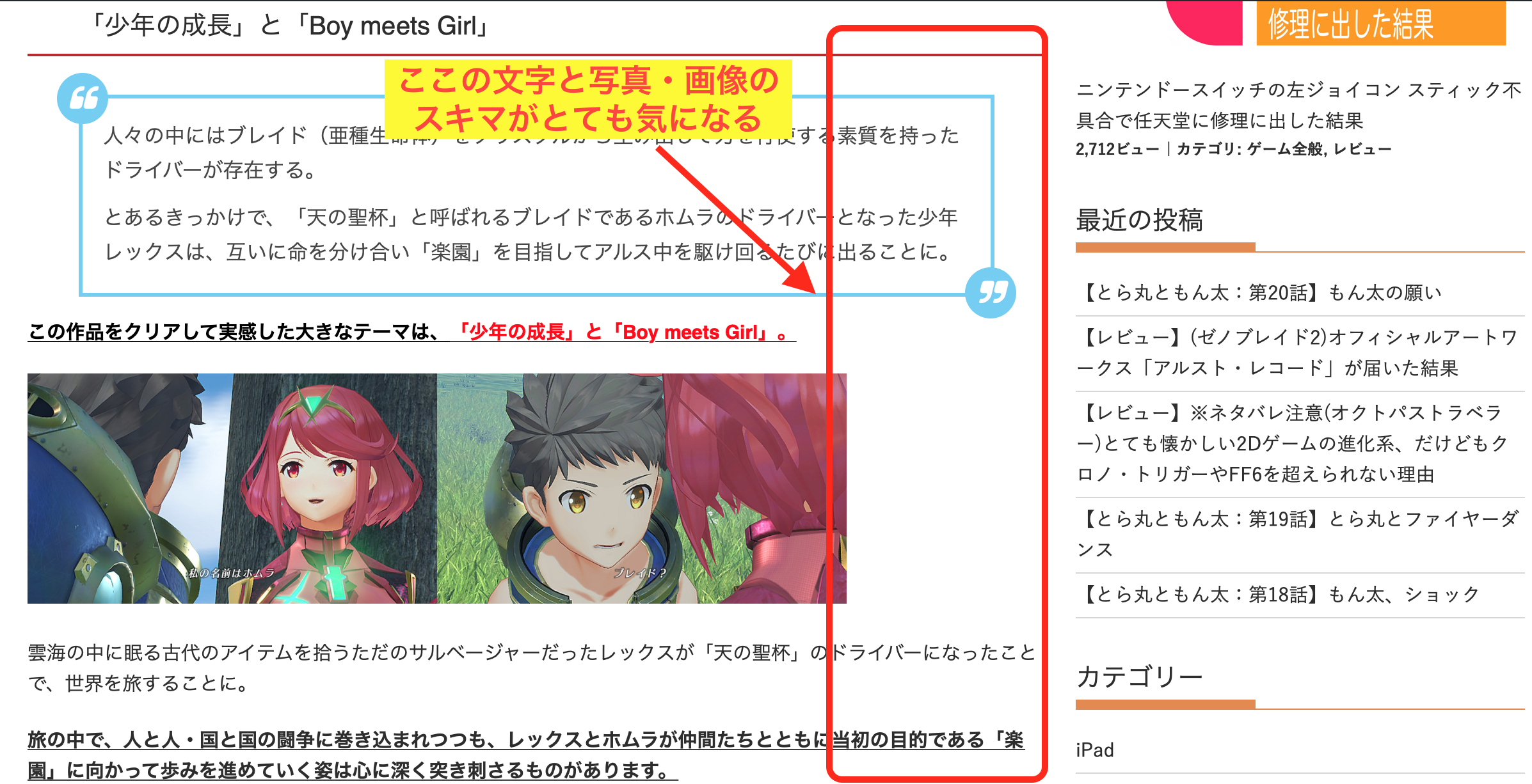 SuperMagのトップページや全体のレイアウトは気に入っているのですが、デスクトップで自分のブログを閲覧する際に、「写真の幅」と「テキスト記事の幅」が異なる点にずっと違和感を感じていました。
