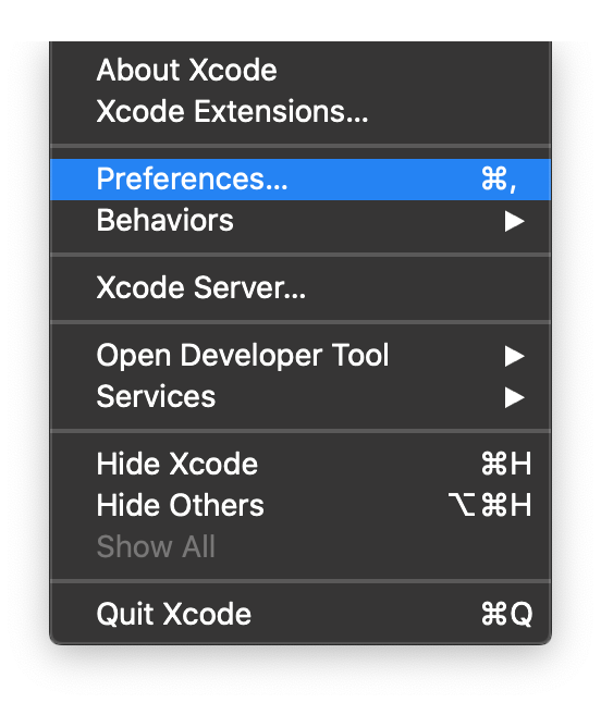 まずはXcodeからPreferenesを開きます。